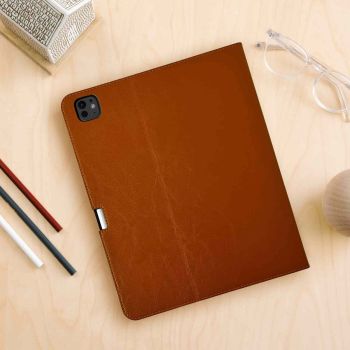 4. iPad Pro 13" (M5 & M4) Leather Case - With Pencil Holder - Thin Brown Genuine Cowhide Leather - Sleep-Wake - For Models A3360, A3361, A2925 & A2926